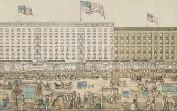 The St. Nicholas Hotel was a 600-room, mid-nineteenth century luxury hotel on Broadway in the neighborhood of SoHo in Manhattan, New York City.[1] It opened on January 6, 1853, and by the end of the year had expanded to 1,000 rooms.[2] The St. Nicholas raised the bar for a new standard of lavish appointments for a luxury hotel.[3] It was the first New York City building to cost over US$1 million.[2][4][5] The hotel was said to have ended the Astor House's preeminence in New York hostelry.[6]