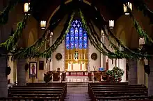 The church is known for its music program. The first organist of the parish, John F. Franklin, began training a vested boys' choir as early as in spring 1869.[23]In January 1911, the first Organ Recital Series in the city was launched.[24] The first recording of the Men and Boys' Choir appeared as early as 1954, an Evensong service sung on WGMS radio.[25] In 1980, the Men and Boys Choir was discontinued.[26] In 1993, the chorister programme was revised with an additional girls choir which sang at the Sunday 9a.m. Mass.