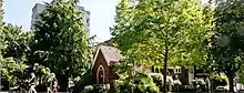 The Anglican Parish of St Paul was established at a time when the population of Vancouver was rapidly expanding. In response to a demand from a small group of St James' parishioners, a vacant lot was purchased and a daughter church was built in 1889. The parish was established in 1891.[2] The church was located at the centre of the geographically-defined parish, but in 1898 it was placed on skids and moved north-west, away from railway yards in Yaletown and closer to where most parishioners lived in the West End.[3] In 1905, it was replaced by a larger church, and the old church became the parish hall.