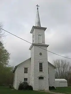 St. Paulus Evangelisch Lutherischen Gemeinde (also called Kornthal Church or Kornthal Union County Memorial Church) is a historic Lutheran church in Jonesboro, Illinois. The church was built by immigrants from Austria, who settled in the Jonesboro area in 1852. Architect Charles Fettinger, one of the settlers, designed the church. The wood-frame church features a limestone foundation, upper-story windows topped by lunettes, and a double entrance topped by an arched transom. The interior of the church features an intricately carved wooden altar and pulpit, also designed by Fettinger. Construction on the church was completed in 1860, and the building was dedicated in 1861. The church's bell tower, which is topped by a spire, was added in 1889. The Queen Anne style parsonage was constructed in the 1900s. Services at the church ended in 1949, and the church became the property of the Kornthal Congregation and Historical Society. It was refurbished in 1963 with the aid of the State of Illinois. The church is one of the only remnants of southern Illinois' German-speaking population.[2]