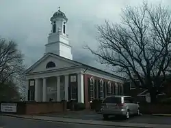 St. Thomas Church is a historic Episcopal church located at Orange, Virginia, United States. It is a rectangular brick structure measuring 40 feet wide and 105 feet deep. The front facade features a recessed portico with two Doric columns flanked by two Doric pilasters. Atop the gable roof is a three-stage tower topped by an octagonal cupola. The original church building was built in 1833–1834, and measured approximately 40 feet wide and 65 feet deep. It was built by William B. Philips, a master mason employed by Thomas Jefferson during the construction of the University of Virginia. It was enlarged and improved in 1853, and enlarged again in 1912. In 1928, the rear addition was raised to a full two stories and a parish hall constructed. The original church is believed to have been based on the plans by Thomas Jefferson for Christ Church in Charlottesville, Virginia. That church was demolished in 1895.[3]
