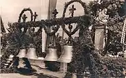 It is not known when the first bells were hung in the church tower. A bell consecration took place on August 5, 1900. During the World War I these bells had to be delivered for armament purposes in 1916. On July 2, 1922 the consecration of the bells cast by the company Georg Wolfart from Lauingen took place. They cost 243,328 marks:[19]
