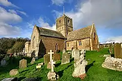 The Church of St Andrew in Clevedon, Somerset, England. Parts of the original 12th-century church remain with 14th- and 15th-century additions.[1][2] It is on a hill overlooking the Bristol Channel, and has been designated as a Grade I listed building.[3]