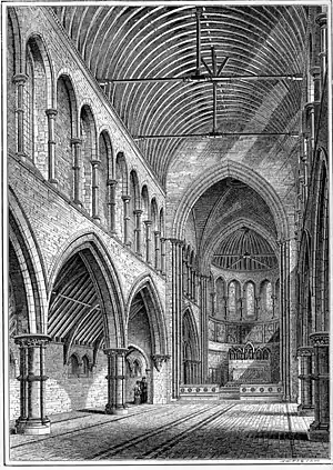 Interior of St Andrew's Church, Plaistow - frontispiece of Charles L Eastlake, A History of the Gothic Revival. London: Longmans, Green; N.Y. Scribner, Welford, 1872.