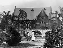 The foundation stone was laid on 7 June 1893 by Mrs Peter McIntosh, the daughter of William J. Brown, the founder of Presbyterianism in Rockhampton. At the laying of the foundation stone, William McIlwraith, editor and joint owner of the Rockhampton Morning Bulletin, read a brief history of events in Rockhampton and this was laid with copies of sermons by Dr Hay and his address to the General Assembly in 1891 in a bottle under the foundation stone. The former church was opened on 15 April 1894 by Rev. Dr McSwaine of St Paul's Church in Brisbane.[1]