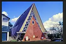 The former church was described as "the isoscelean masterpiece of an ever-resourceful maverick architect".[2][3]