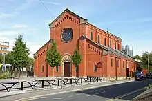 It is situated on the corner of Prince's Street and Paradise Street, next to St Anne's Catholic Primary School and close to King Street in the centre of the town. It was built in the Lombard Romanesque style. In December 2000 the church suffered an arson attack which gutted the building; it was rebuilt in 2004.[2][3][4]