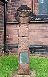 In the churchyard are three stone fragments dating possibly from the 10th century which have been re-erected in the form of a Celtic cross.[9] The re-erection was carried out in 1958 by the Bromborough Society. It is listed at Grade II.[10]