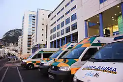 Gibraltar Health Authority ambulances parked outside St Bernard's Hospital
