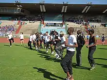 St Catherine's senior school athletes warm up ahead of an inter-school competition.