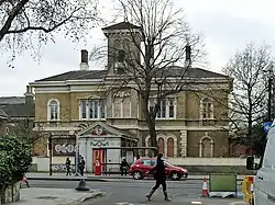 The building opened in a former workhouse building as the City of London Union Infirmary in 1874.[1] The palatial design of the workhouse had been created by architect Richard Tress and had cost over £55,000 to construct, boasted central heating, a dining-hall measuring 100 feet by 50 feet, Siberian marble pillars, and a chapel with stained glass windows and a new organ. It closed in 1909 but re-opened as a hospital for chronically ill people becoming known as the City of London Institution in 1912 and as the Bow Institution in 1913.[1] It became a psychiatric unit, known by its most commonly adopted name of 'St Clement's Hospital' in 1936. The west side of the site suffered extensive bomb damage during the war, destroying the chapel and the sites initial symmetry. The hospital joined the newly formerd National Health Service in 1948[1] and then came under the same management as the London Hospital in 1968.[1] After services were transferred to a new Adult Mental Health Facility at Mile End Hospital, the hospital closed in February 2006.[2]