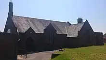 The Church was built in 1914. The foundation stone was laid on 21 March 1914. The first service was held in the Church in January 1915.[2] The building was initially intended to be the Church Hall and the main Church building was to be built in front of the field. However, the parish ran out of money and the hall, which was built of Ellesmere Sandstone with the inside lined with Ruabon brick, was converted into the church and a small hall built next to it, which is now known as the Institute.[3] The field is used for Church Fetes and other events.