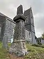 In the graveyard of St Dochdwy's is a monument known as the Irbic Cross. St Dochau's grandfather was known as Erbin, and it is thought that the cross is probably a commemoration to him.[7] The cross is around ten feet high and dates from the 10th century. It is built from Sutton stone in four moulded blocks, though the cross head is missing.[8]