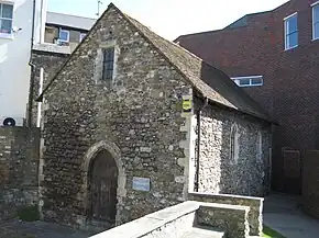 In the middle of the 19th century it was converted into a two-floor building, and became a dwelling-house and forge. In 1943 artillery shells from the cross channel guns destroyed the two shops hiding the chapel on the Priory Road side, leaving the chapel itself untouched. Attempts to make it a Scheduled Ancient Monument in 1963 failed and it was scheduled for demolition, but on attracting interest from a local Catholic priest(Father Tanner) it was privately purchased two years later. From 1967, it underwent a one-year restoration project, using original medieval techniques (although at least 75 per cent of the building seen today is original), and reconsecrated in 1968 . During the restoration there was a 4-day archaeological investigation conducted by Brian Philp . In 1973 the building was protected with a grade II* listing.[4] It is now an ecumenical chapel, and was for a time open to the public. It now rarely opens. It is maintained by The St Edmund of Abingdon Memorial Trust. Though it is used for a Saturday morning Eucharist, a Christian Unity vigil, candle-lit services for the Feast Days of St Edmund and St Richard, it now opens to the public less frequently. On Good Friday 18 April 2014 prayers were said in the chapel by the Archbishop of Canterbury The Most Reverend Justin Welby. This was probably the first visit by an Archbishop of Canterbury for many centuries.
