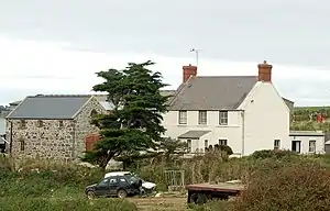 A 5000-year-old cromlech—including two early British tombs—lies nearby,[7] although they were damaged by a tenant farmer in the 19th century who removed two of the stones.