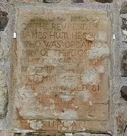 A plaque on the outside of the south wall commemorates the Rev James Hutcheson who served here from 1649 to his death aged 81 in 1706. He is notable also through his involvement in the Christian Shaw or Paisley witches affair which took place in 1697. Christian Shaw, aged 11, gave evidence that led to eight people being accused of witchcraft. It is reported that Shaw had been "betwitched" by the defendants and was exhibiting behaviours including flying, and was vomiting coal, hair, wool, bent pins, etc. Seven were hanged as a result of Christian's testimony, three men and four women, whilst the eighth accused person was found dead in his cell.