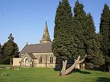 The present building replaced a medieval chapel. The church dates from 1861 and was built to the designs of the architects Giles and Brookhouse by the contractors William Bridgart (son of George and Mary Bridgart) and Charles Whiting Bridgart (son of Robert Bridgart snr. and Hannah Bridgart) of Derby. William and Charles were first cousins. It opened for worship on 13 May 1862.[4] It was consecrated on 23 September 1863.[5]