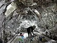 Built of flint and rubble with a tiled and slated roof, the grotto is positioned so that the structure appears to be the source of a spring feeding the ornamental lake. The ante-chamber is lined with flints, fossils and minerals, and the main chamber has walls lined with shells, fossils, coral and stone. Some of the shells were sent from the Caribbean by the father of William Thomas Beckford of Fonthill. Rather than just a shell room, the grotto was an attempt to create a room that felt underwater, and is considered a remarkable example of antique surrealism.[19][20][21] After falling into decay, it was restored by the 12th Earl.