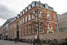 From 1830 to 1914 the building housed Leuven's commercial court and small claims court. It was badly damaged during the First World War, and extensively renovated as a result.[2] It then housed the Municipal Academy of Fine Arts.[2] An extension was added in 1937 at an angle to the original building.[2] The former college is now part of M – Museum Leuven and has been registered as built heritage since 2009.[1]