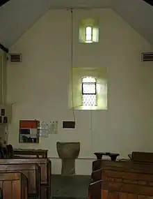 In about 1950, a new font was installed. Believed to date from the 12th century, it was found in the churchyard of St Thomas in Osbaldwick. In 2016, a small brick-built extension was added, providing a welcome lobby, toilet and kitchen.[3]