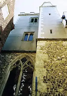 The church is just off the High Street, in Winchester, England. It is probably of Norman origin, and is said to have been the chapel of William the Conqueror's palace (built 1069–70, destroyed 1141) with a tower added in the 15th century. The church is now almost wholly surrounded by adjacent buildings. It is recorded as being restored in 1475–7, in 1672 (the present roof dates from this restoration), 1847–8, 1881, and 1979–80.