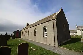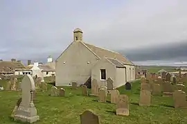 St Magnus's Church is located in the village of Birsay in the northwest area of Mainland, Orkney in Scotland. It is a rectangular building with a harled exterior, round-headed windows and gabled ends. The western gable contains an original birdcage style belfry. The church has a small southwest porch, possibly dating from the 1867 remodel.[1][2]