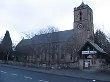 In 1917 a lych gate was built in Arts and Crafts style in memory of a previous vicar of the church. It is in sandstone with a timber superstructure. The lych gate is designated by Cadw as a Grade II listed building.[6]