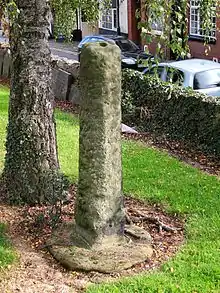 The church yard also contains the remains of a 15th-century cross, comprising a socket stone and part of the shaft.[2][3] This is grade II listed and a scheduled monument.[6]