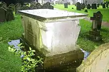 The Hankin Family Tomb in the churchyard, was Grade II listed in 2005.[5] It was made in 1816 of Portland stone and is a "rectangular chest tomb on a moulded base, with a two-part cover consisting of a low hipped top slab and lower moulded cornice."[5] The panels at the sides contain various inscriptions including the one on the south panel which reads: "Sacred to the memory of John Hankin who departed this life January 12th 1816, aged 55 years", and the one on the north side which reads: "Sacred to the memory of Elizabeth, widow of John Hankin, who departed this life September 13th 1831, aged 67 years."[5]