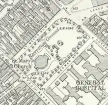 St Mary's on the Ordnance Survey 25 inch map of 1892-1914. Note also Weaman Row, which no longer exists.