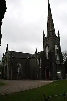 The Church is built in the Gothic Revival style.[3], and contains an octagonal limestone font dating from 1637.[4] The Churchyard contains a number of interesting tombs, including two mausoleums (Morgan, of Kilnagleary, and Newenham, of Coolmore).[3]