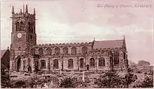 The Domesday Book (c. 1086) records the presence of a priest and a church on the site of the present church, and it is shown on an 1840 map of the town centre of Sandbach.[3] This was replaced by another church erected about the time of Henry VII. This church was built in sandstone which became badly weathered. The present church dates largely from the considerable degree of rebuilding by Sir George Gilbert Scott in 1847–49. Much of the existing fabric was replaced and the remaining fabric was encased in new stone. The east end of the church was extended by some 40 feet (12 m) and the tower was rebuilt as a copy of the former tower.[4] The builders were Cooper and Son of Derby. The stone, which came from quarries in the Mow Cop area, was given by Sir Philip Grey Egerton M.P.[5] Part of the west end had to be repaired in 1894–95 following a fire.[1] In 1930 Austin and Paley added a choir vestry, and a north porch, at a cost of £1,331.[6] The parish registers date from 1562 and are complete. The churchwardens' accounts prior to 1888 are lost.[4]