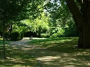 The garden extends to 1.82 hectares (4 acres) and includes notable specimens of ash, lime and London plane trees, with one specimen of plane potentially dating from the 18th century.[1][2]