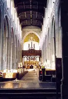 St Mary the Virgin is the parish church of Saffron Walden, Essex. It is the largest non-cathedral church in Essex with an overall length of 183 feet (56 m) and the spire, 193 feet (59 m) high, which is the tallest in Essex. It was designated as a Grade I listed building in 1951.[1][2]
