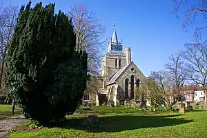 As a burial place Aylesbury Churchyard was much overcrowded; and it was with difficulty that grave space could be found for an interment without disturbing the remains of an already existing occupant. It was found imperative to close it, and it was closed at the end of the year 1857; the cemetery in the Tring Road was then consecrated and opened. Occasionally interments take place in the churchyard.[1]
