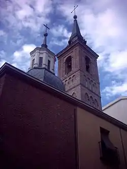 The most interesting feature of this temple is undoubtedly its tower, dating from the 12th century except the Herrerian style spire tops, made of slate for the 18th century. It has a square and is constructed of brick decorated with blind arches. The brick has dimensions of 30 x 15 cm in the lower parts, but it was the brick bell tower area are smaller and of a different hue. This tower possibly corresponds to one of the Arab minarets preserved in the city. The tower was transformed in the 14th century, when it changed the cover, which was subsequently replaced by the spire.