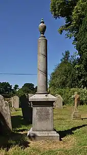 The churchyard includes numerous 18th- and 19th-century chest tombs and a few bale tombs. A granite column topped by a sculpture of a funerary urn marks the grave of Albert Morris, one of 34 people who were killed in the Shipton-on-Cherwell train crash on Christmas Eve 1874.