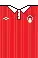 The club's first kit was a red shirt with a white collar and a white chevron, with white shorts and red socks.[61] Since then they have changed to a kit of a red jersey with white sleeves, white shorts and red socks, rarely changing from this format.