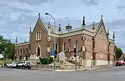 The main church is a fine revival Gothic building constructed over a long period from 1855 to 1929. With its central city setting and landscaped grounds including a fine limestone wall and terraces, it is a major landmark in Ipswich.[1]