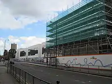 In 2006 the school joined the Building Schools for the Future program to completely replace its 40-year-old building. The £41 million (approx.) construction project by Bouygues began in 2009.[12][19] The works are within a wider "St Paul's Way Transformation Project", chaired by Lord Andrew Mawson.[20] The school took the opportunity to commission a large artwork on the hoarding,[20][21] commissioned by Bow Arts and incorporating art by the pupils and professional artist Emily Allchurch— was described as a "crucial" touch by Sir Bob Kerslake of the Homes and Communities Agency.[22]