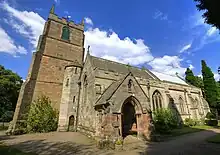 The earliest known church to be built on the current site was Norman, probably dating from the 12th century. A Norman arch survived in a wall dividing the nave from the south aisle until the restoration of 1848.[1] A small doorway from the original Norman church in the north wall of the nave was bricked up, probably in the 18th century, and a plain window is now set in its place. In the second half of the 14th century the old Norman church was falling into disrepair, and major restorations and alterations to the church took place under the guidance of Sir Thomas Arderne, Lord of Elford at that time.