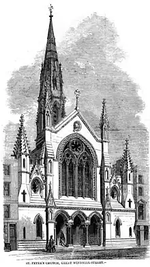 St Peter's Church was an Anglican church in Great Windmill Street in Soho, in the City of Westminster, London. It was built in 1861, and was demolished in the 1950s.