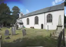 St Saeran's Church lies in the village of Llanynys, Denbighshire, Wales. It was listed by Cadw at Grade I on 19 July 1966 (Cadw Building ID: 808).[1] Between 2013 and 2015 £2.5 million was spent preserving the church, which has one of the finest medieval paintings in North Wales. The church's former importance is today evidenced in the sheer size of the interior which is large and spacious; it had close links with the Bishops of Bangor, who were its "rectors" or owners. Like many Denbighshire churches it is double-naved and has a fine pair of the characteristically local late-medieval hammerbeam roofs. The fluted timber pillars between the naves are more unusual, and much later, dating from a restoration in 1768.