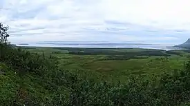 Situated on the southern bank of the Stabburselva River, the Stabbursnes Nature Reserve covers an area of approximately 16 square kilometres (6.2 sq mi).[1] It is positioned in the municipality of Porsanger, approximately 20 kilometres (12 mi) southwest of the village of Lakselv.[2] The reserve extends from the river delta and its bordering floodplains to the mountainous areas further inland.