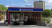 Stadshagen metro station is a station on the blue line of the Stockholm metro, located in the district of Stadshagen. The station was inaugurated on 31 August 1975 as part the first stretch of the Blue Line between T-Centralen and Hjulsta. The trains were running via Hallonbergen and Rinkeby.[2] The distance to Kungsträdgården is 3 km (1.9 mi).