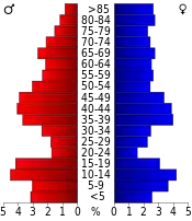 There were 2,010 households, out of which 29.90% had children under the age of 18 living with them, 55.90% were married couples living together, 5.90% had a female householder with no husband present, and 35.60% were non-families. 33.00% of all households were made up of individuals, and 17.20% had someone living alone who was 65 years of age or older. The average household size was 2.34 and the average family size was 2.99.