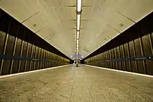 Parallel platform on Marienplatz; between the black pillars are passages to the actual platform
