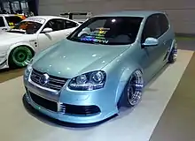 Stanced Volkswagen Golf Mk5 with a widebody kit at the 2016 Osaka Auto Messe.