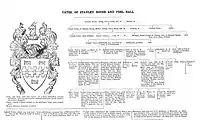 By about 1788 the property was purchased by Henry Sudell, and in 1796 he built Woodfold Hall to the south-west of Stanley House. This hall then became the main manor house of Mello, and Stanley House became a farm and was occupied from then by tenant farmers. Sudell became bankrupt in 1827 and was forced to sell the whole estate in 1831.[9] It was bought by John Fowden Hindle (1757–1831), who died shortly after he purchased the house. It was inherited by his eldest son, John Fowden Hindle. He had no children, so when he died in 1849 it was passed to his younger brother William Fowden Hindle. On his death in 1853 his daughter Mary Jane Hindle became the owner.[10] She had previously married George Frederick Gregory. At about this time a travel directory of Lancashire made the observation that "Stanley House, though now the homestead of a farmer, still retains traces of its former splendour."[11] In 1878 the sister of George Frederick Gregory, Eliza Amelia, and her husband Daniel Thwaites bought the estate. Daniel Thwaites was a wealthy brewer and politician. He was the son of the founder of the present Thwaites Brewery in Blackburn. He made major improvements to the estate including repairs to Stanley House. After he died in 1888 his only child Elma Amy Thwaites inherited the property. She married Robert Yerburgh, and the couple had two sons. Their eldest son, Robert Yerburgh, who later became 1st Baron Alvingham, inherited the house; and when he died in 1955 his son Robert Guy Eardley Yerburgh (1926–2020), 2nd Baron Alvingham, became the owner. In 1999 the house was purchased by Leehand Leisure Ltd, and restoration of the now derelict building commenced.