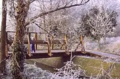 ![]() Footpath bridge connecting stream-side cottages in winter | |